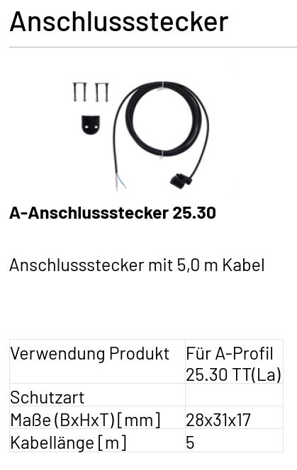 A-Anschlussstecker 25.30 Anschlussstecker mit 5 m Kabel