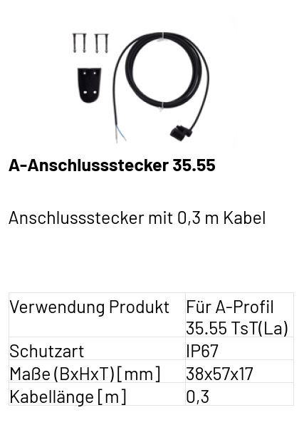 Anschlussstecker 35,55 Anschlussstecker mit 0,3 m Kabel