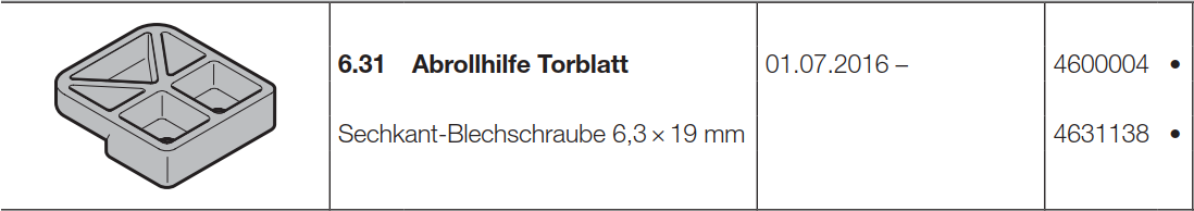 Hörmann Abrollhilfe Torblatt, für Doppelgaragen-Schwingtor N 500