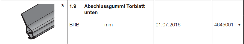Hörmann Abschlussgummi Torblatt unten Doppelgaragen-Schwingtor N 500