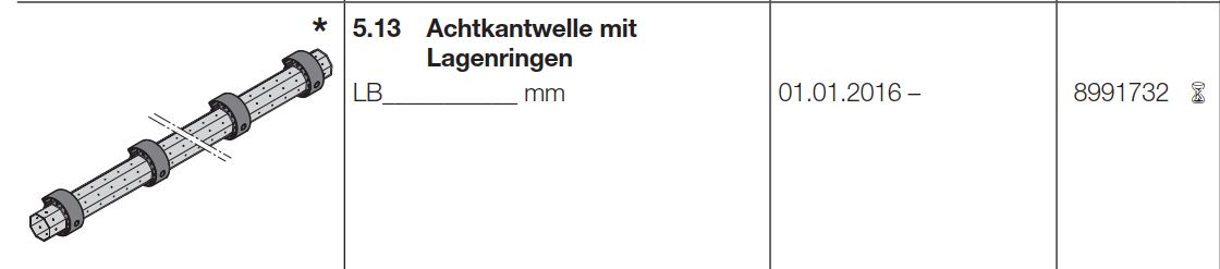 Hörmann Achtkantwelle mit Lagenringen HG 75 TD