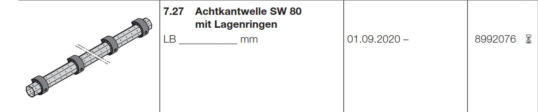 Hörmann Achtkantwelle SW 80 mit Lagenringen Garagen-Rolltor RollMatic T