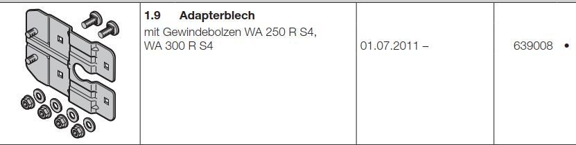 Hörmann Adapterblech mit Gewindebolzen WA 250 R S4, WA 300 R S4