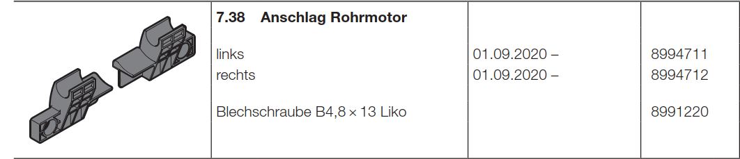 Hörmann Anschlag Rohrmotor rechts Garagen-Rolltor RollMatic T