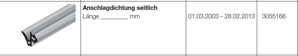 Hörmann Anschlagdichtung Nebentür seitlich der Baureihe 40 und Industrietor-Baureihe 40-50