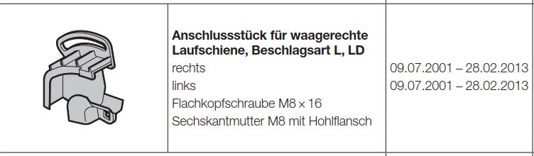 Hörmann Anschlussstück für waagerechte Laufschiene Beschlagsart L LD links für die Industrietor Baureihe 40-50