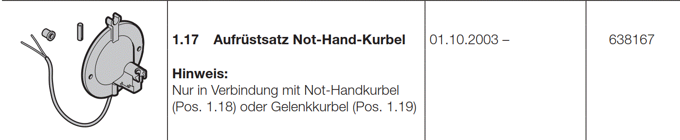 Hörmann Aufrüstsatz Nothandkurbel Industrieantriebe WA 500 FU