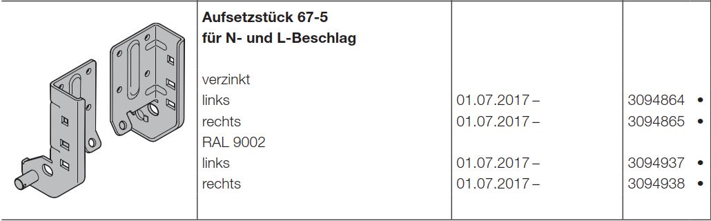 Hörmann Aufsetzstück 67-5, LPU 67 Thermo, für N- und L- Beschlag verzinkt, DIN rechts