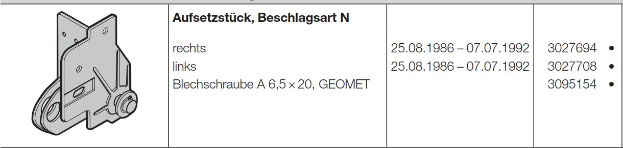 Hörmann Aufsetzstück Beschlag N, links von innen gesehen Industrietorbaureihe 20