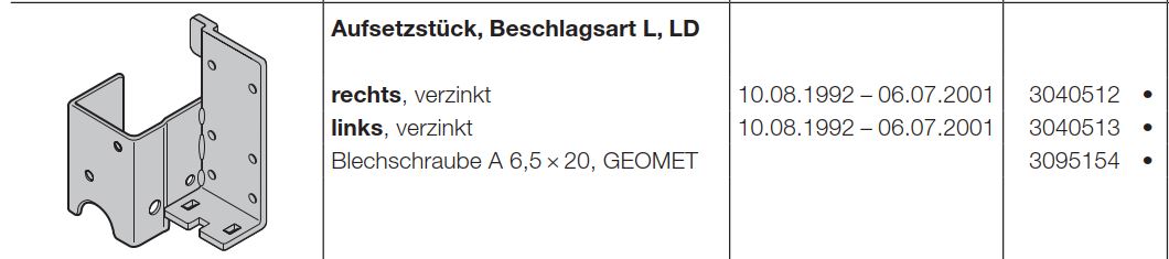 Hörmann Aufsetzstück Beschlagsart L, LD für die Industrietor Baureihe 30