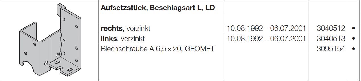 Hörmann Aufsetzstück-Beschlagsart L, LD für die Industrietore der Baureihe 30 links