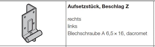 Hörmann Aufsetzstück rechts, 3055053, Beschlag Z, für EcoStar, RenoMatic, light, Baureihe 40