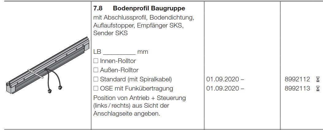 Hörmann Bodenprofil Standard (mit Spiralkabel) Garagen-Rolltor RollMatic T