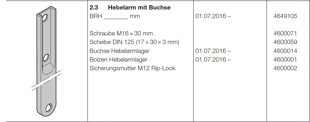 Hörmann Bolzen Hebelarmlager Doppelgaragen-Schwingtor N 500