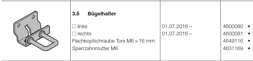 Hörmann Bügelhalter links, Doppelgaragen-Schwingtor N 500