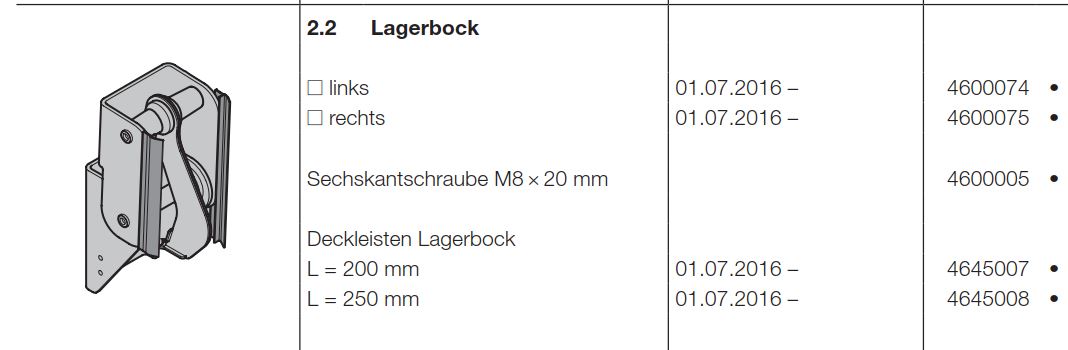Hörmann Deckleisten Lagerbock L = 250 mm Doppelgaragen-Schwingtor N 500