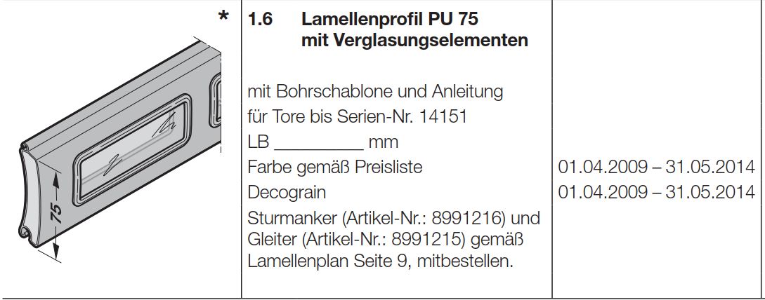 Hörmann Decograin Lamellenprofil PU 75 mit Verglasungselementen