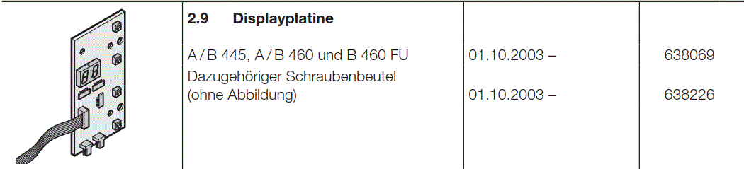 Hörmann Display-Platine für Steuerungen, A / B 445, A / B 460 und B 460 FU, 445 R, 460 R, B 455 R