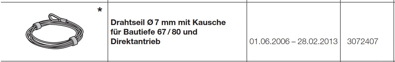 Hörmann Drahtseildurchmesser 7 mm mit Kausche für Bautiefe 67-80 und Direktantrieb