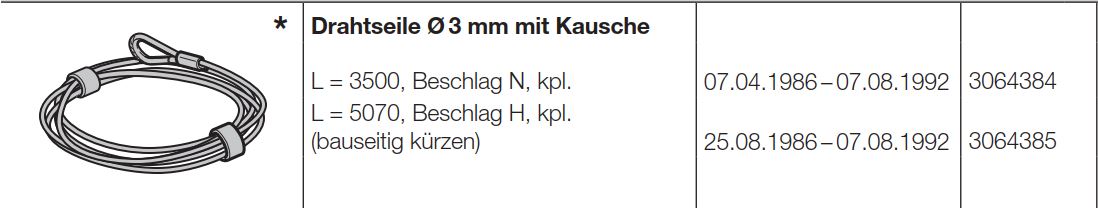 Hörmann Drahtseile Ø 3 mm mit Kausche L = 5070 mm Beschlag H, kpl