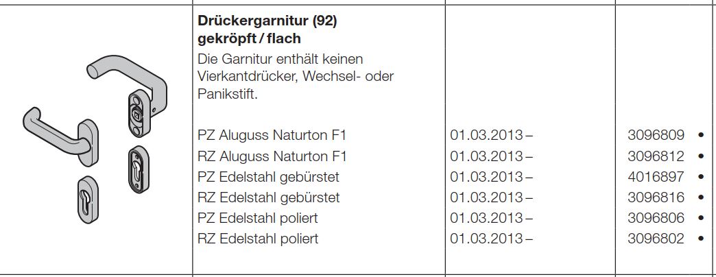Hörmann Drückergarnitur (92) gekröpft flach Edelstahl gebürstet Baureihe 30, 40, 50, 60