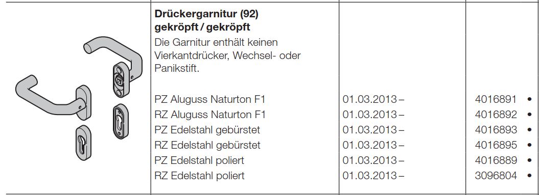 Hörmann Beschlagsteile für Türen der Baureihe 40-50-60
