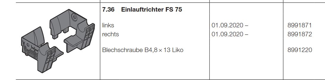 Hörmann Einlauftrichter FS 75 links Garagen-Rolltor RollMatic T