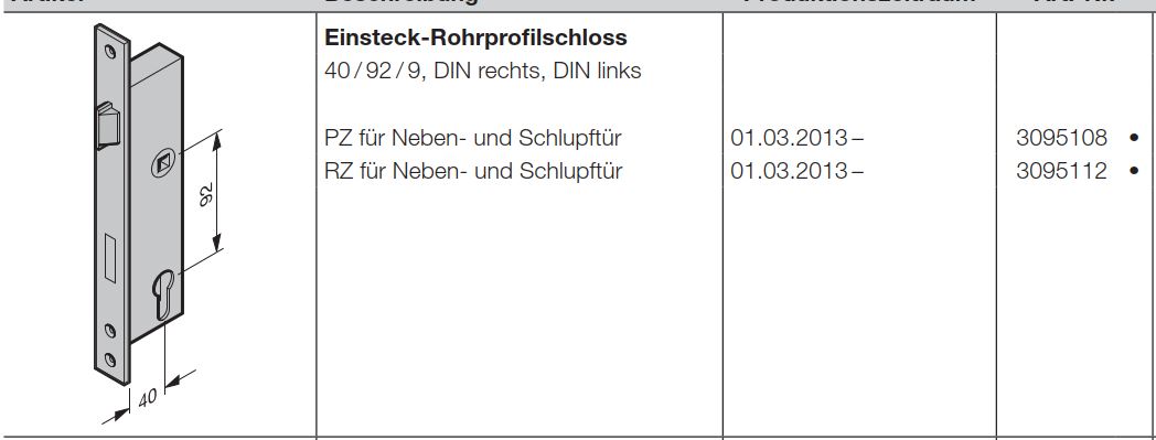 Hörmann Einsteck-Rohrprofilschloss rechts, links für Neben-und Schlupftür für Privat und Industrietore