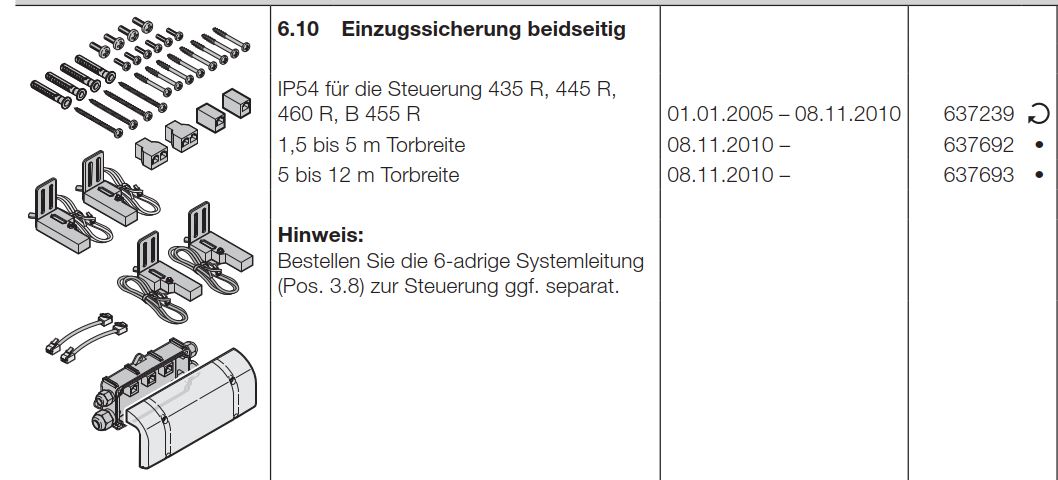 Hörmann Einzugssicherung beidseitig 1,5 bis 5 m-Torbreite