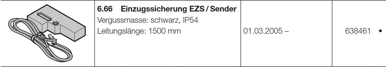 Hörmann Einzugssicherung EZS / Opto Sender Vergussmasse schwarz IP54 Leitungslänge 1500 mm
