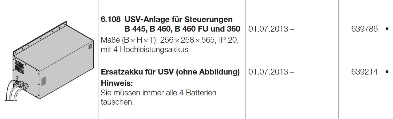 Hörmann Ersatzakku ohne Abbildung für die USV-Anlage