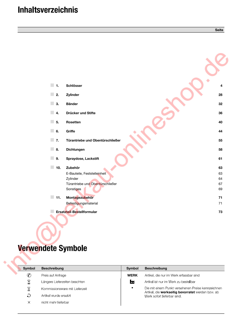 Hörmann Ersatzteilliste PDF für Aluminium-Haustüren
