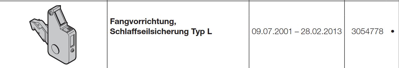Hörmann Fangvorrichtung Schlaffseilsicherung Typ L, Industrietor Baureihe 30-40-50