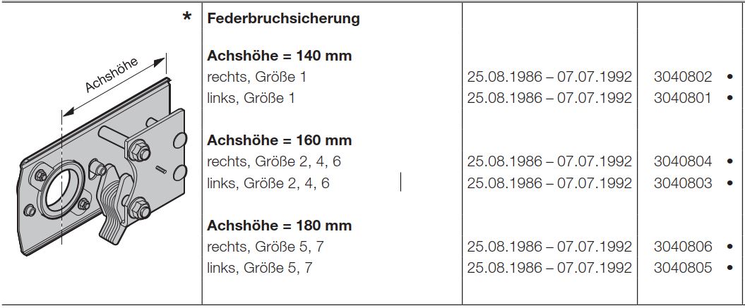 Hörmann Federbruchsicherung Achshöhe=160 mm rechts Größe-2-4-6-für die Baureihe 20, 30