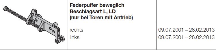 Hörmann Federpuffer beweglich für dir Beschlagsart L LD Industrietorbaureihe 20-30-40-50