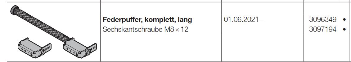 Hörmann Federpuffer, komplett, lang für die Baureihe 60