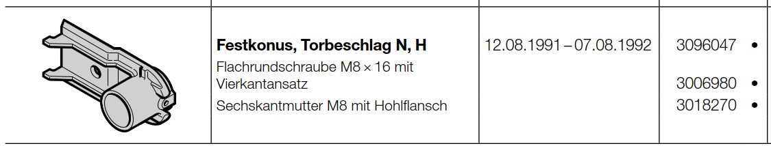 Hörmann Festkonus, Torbeschlag N, H aus Aluminium Druckguss für die Baureihe 20, 30 (Privat)