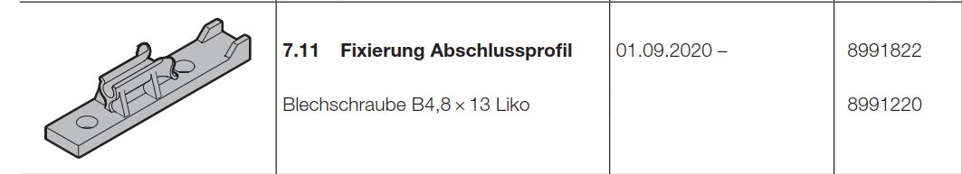 Hörmann Fixierung Abschlussprofil Garagen-Rolltor RollMatic T