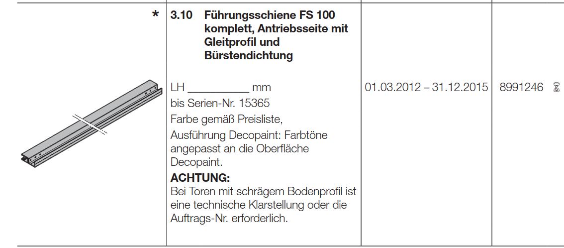 Hörmann Führungsschiene FS 100 komplett Antriebsseite