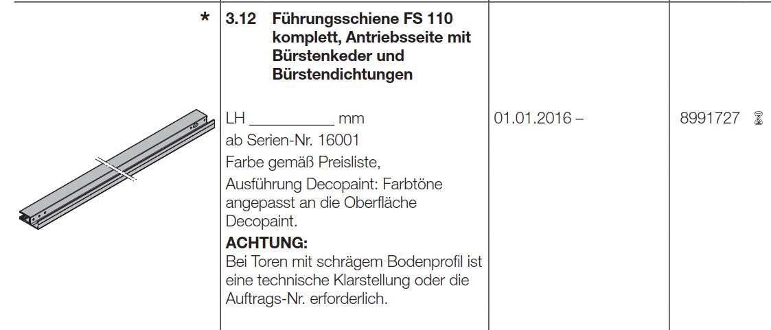 Hörmann Führungsschiene FS 110 komplett, Antriebsseite