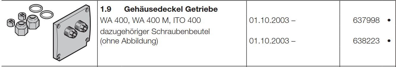Hörmann Gehäusedeckel Getriebe WA 400, WA 400 M, ITO 400