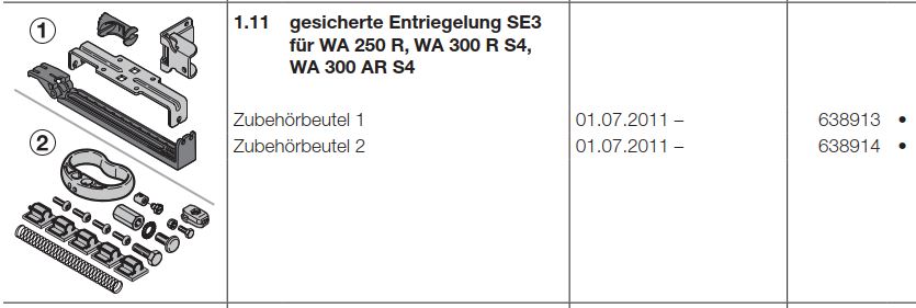 Hörmann gesicherte Entriegelung SE3 für WA 250 R,-WA 300 R S4,-WA 300 AR S4-Zubehörbeutel 1