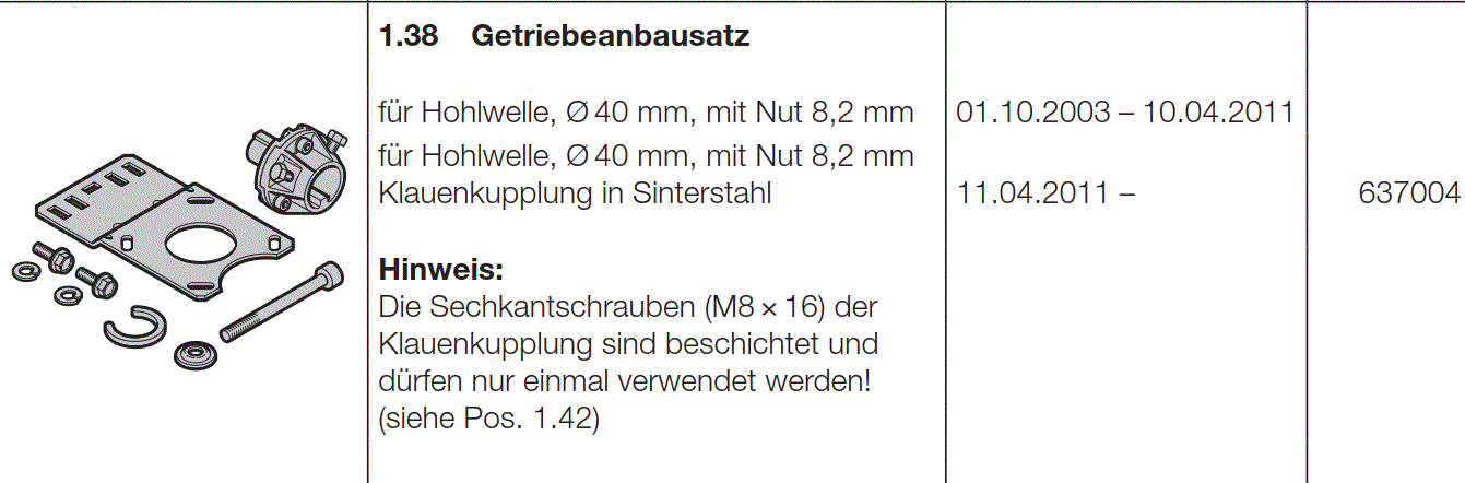 Hörmann Getriebeanbausatz für Hohlwelle, Ø 40 mm mit Nut 8,2 mm, Klauenkupplung in Sinterstahl