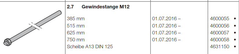 Hörmann Gewindestange M12, 625 mm, Doppelgaragen-Schwingtor N 500