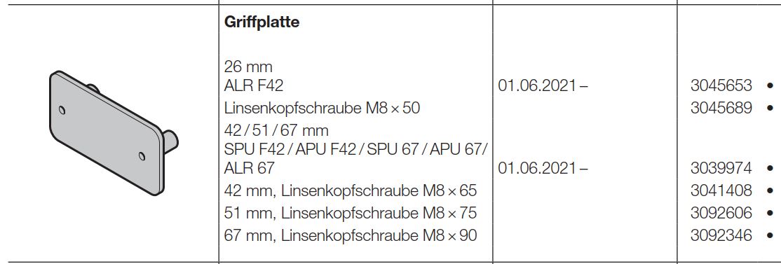 Hörmann Griffplatte 42 / 51 / 67 mm SPU, für BR 60