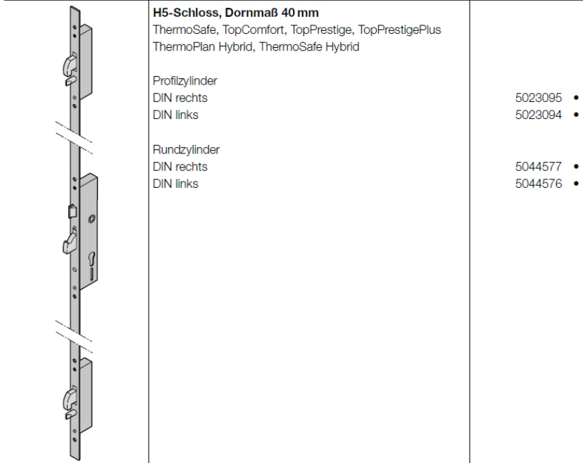 Hörmann H5-Schloss, Dornmaß 40 mm, DIN links, Artikel Nr. 5023094, Profilzylinder