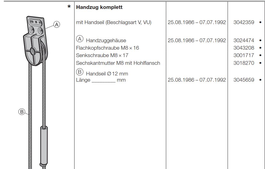 Hörmann Handzug komplett mit Handseil (Beschlagsart V, VU) Baureihe 20