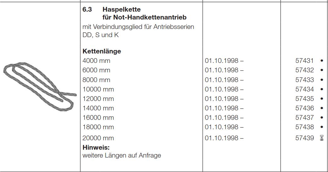 Hörmann Haspelkette für Not-Handkettenantrieb