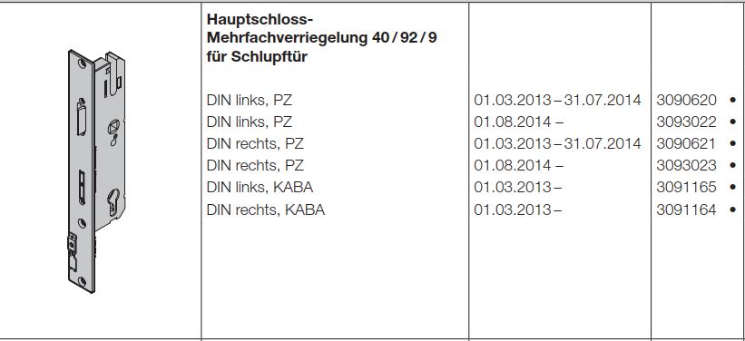 Hörmann Hauptschloss-Mehrfachverriegelung 40/92/9 für Schlupftür-PZ DIN rechts für Baureihe 40 und Industrie-Baureihe 40,50
