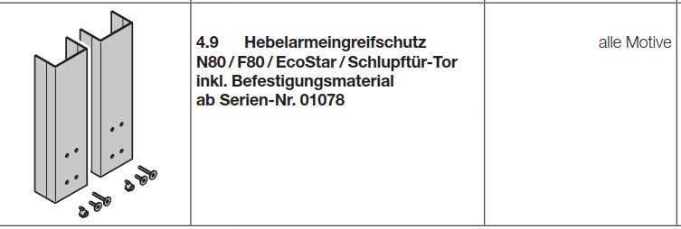 Hörmann Hebelarm-Eingreifschutz Set, Schwingtore N80 / F80 / EcoStar / Schlupftürtor
